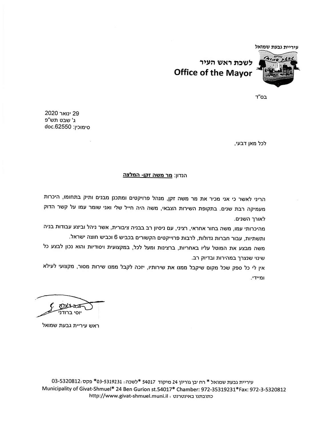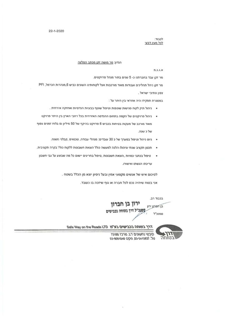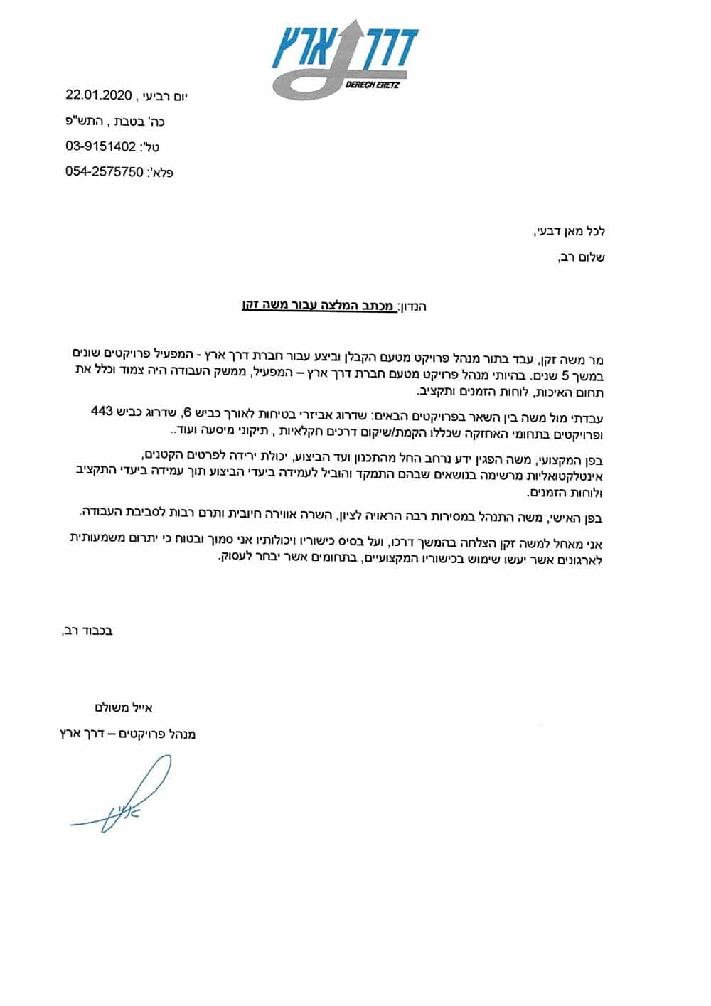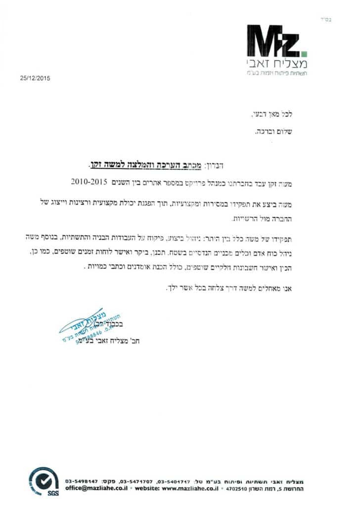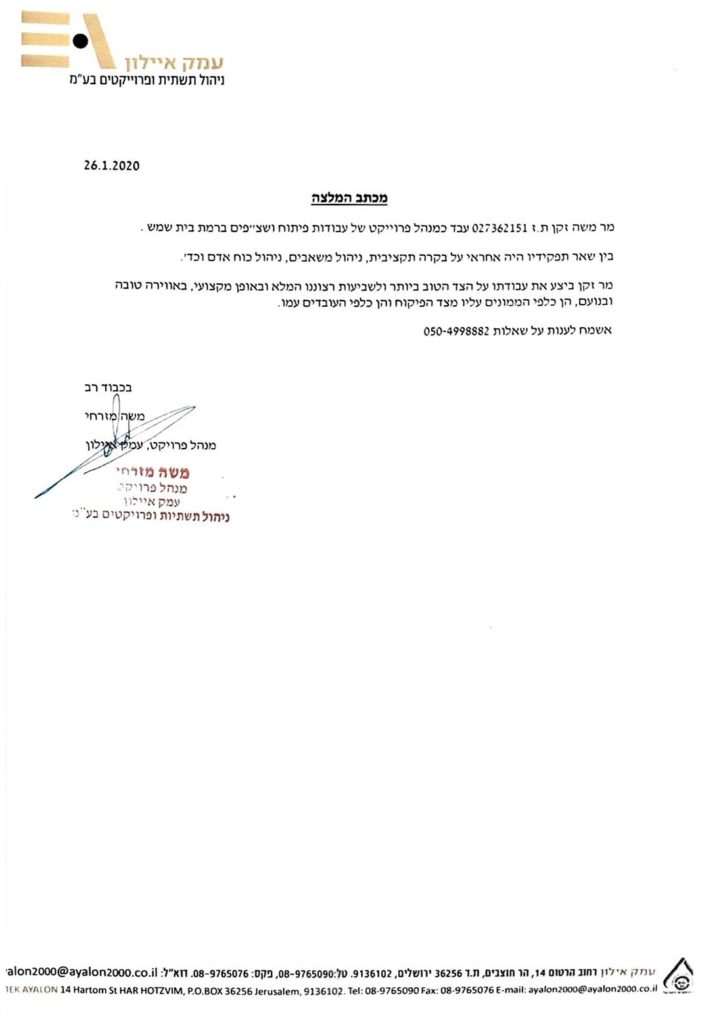 כשבוחרים חברה לפרויקט גדול ומורכב, ישנה חשיבות מכרעת לממליצים רבים. ישי ומשה מחזיקים בהמלצות מגורמים בכירים במשק הישראלי. ראו בדף ההמלצות באתר.